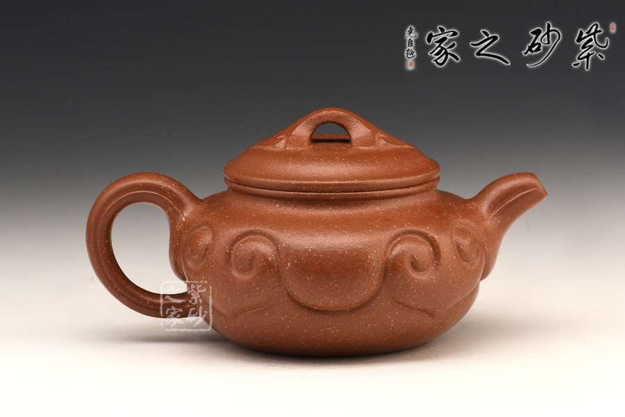 泥性:原礦因含緞泥、紅泥、紫泥等諸多共生礦,陶之后,于深沉之“橙紅色”底上,滿佈五彩斑斕的粗細、深淺之紅、黃星斑點。