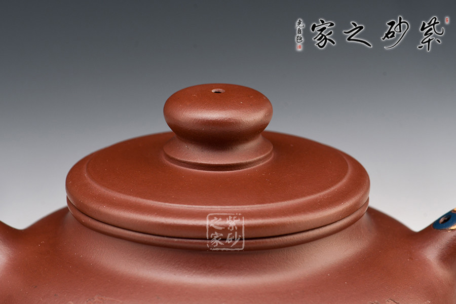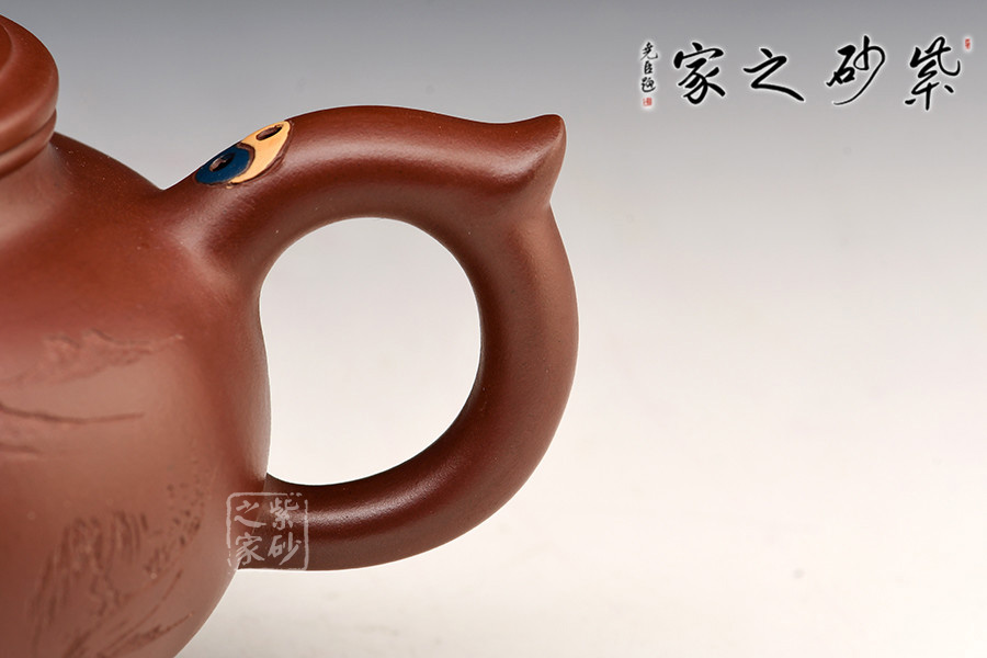 此壺有一亮點之處是壺把上端的八卦圖紋設計,與壺把上的兩孔正好對接。