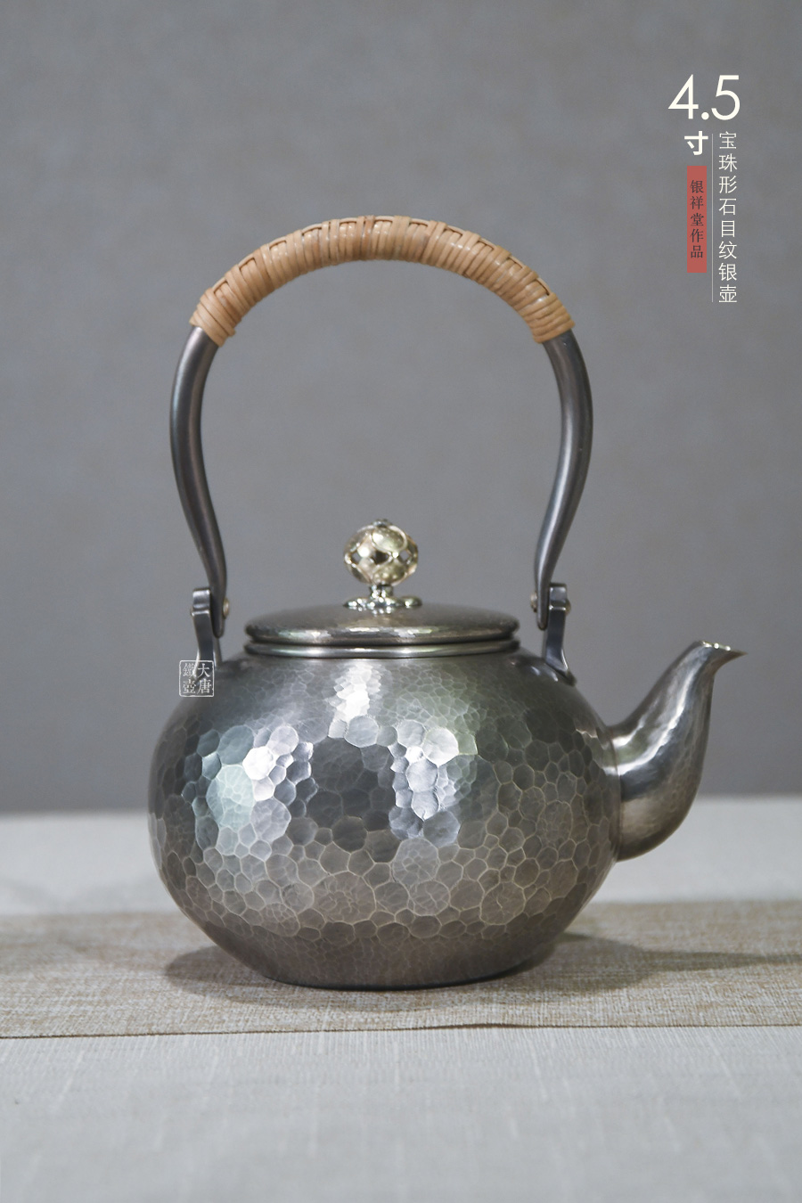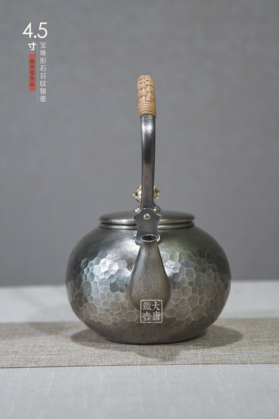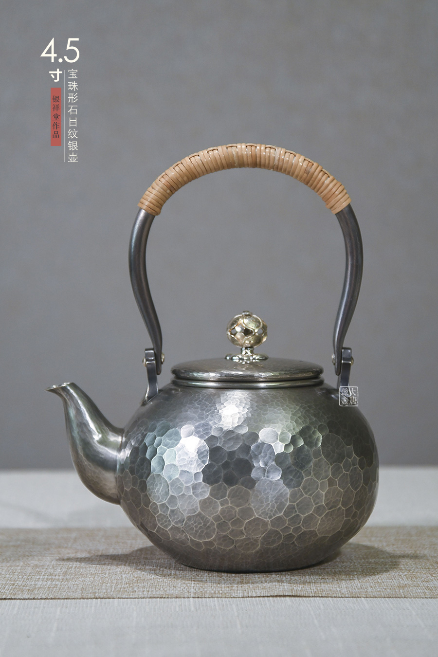 銀祥堂 4.5寸寶珠形石目紋銀壺 [ 編號(hào):80163 ]