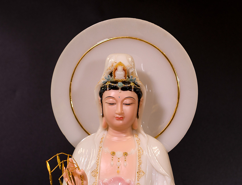 產地:福建 工藝:純手工 創作年份:2020 題材:觀音菩薩 繪制時間:0日 尺寸:*68cm 裝裱: 材質:人造玉 使用場地: