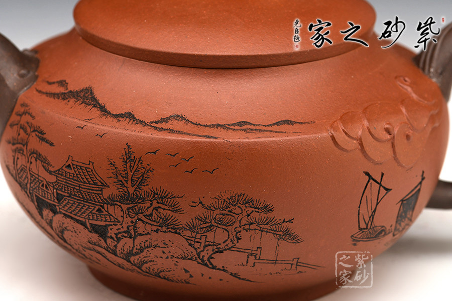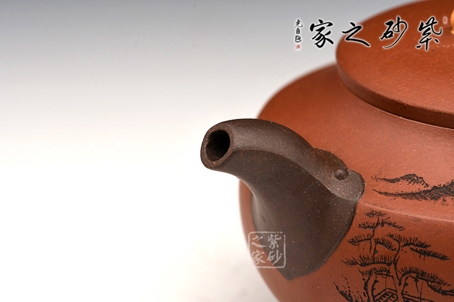 其父朱建偉老師親刻山水詩詞裝飾,壺刻結合,賞心悅目,收藏價值倍增。