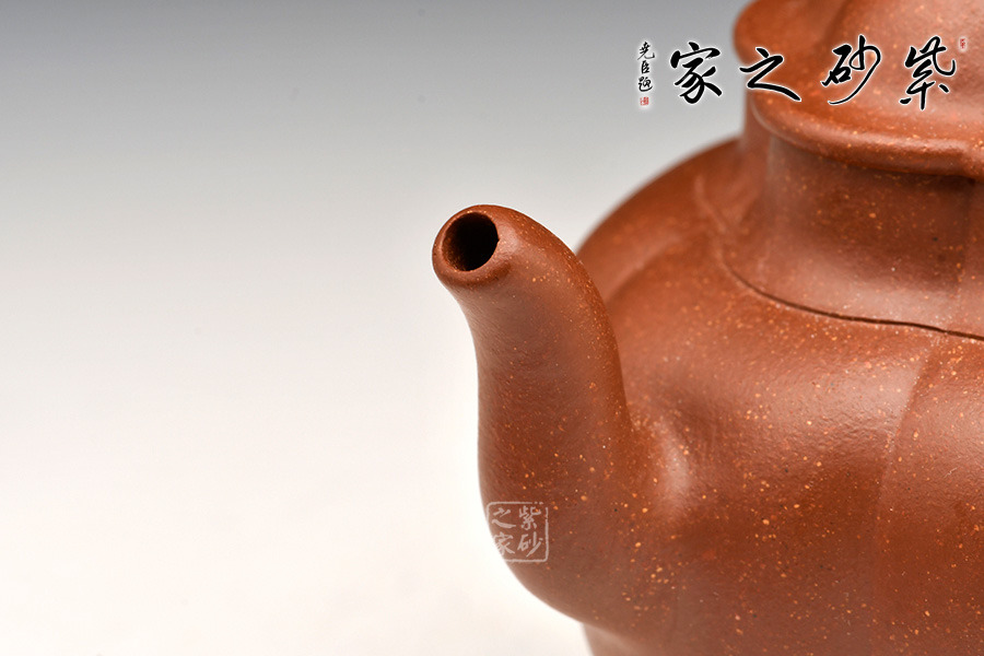 泥性:原礦因含緞泥、紅泥、紫泥等諸多共生礦,陶之后,于深沉之“橙紅色”底上,滿佈五彩斑斕的粗細、深淺之紅、黃星斑點。
