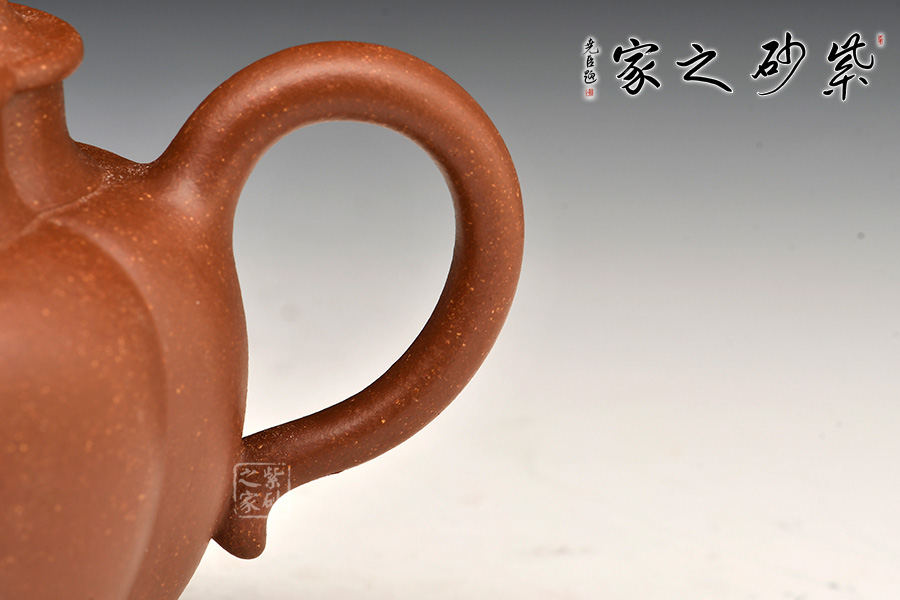 壺蓋亦菱線分布,與壺身上下對接,根根線條,毫厘不差。壺把簡樸大方又便于提壺使用,通身比例恰到好處,甚見功力。