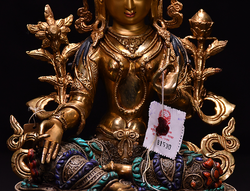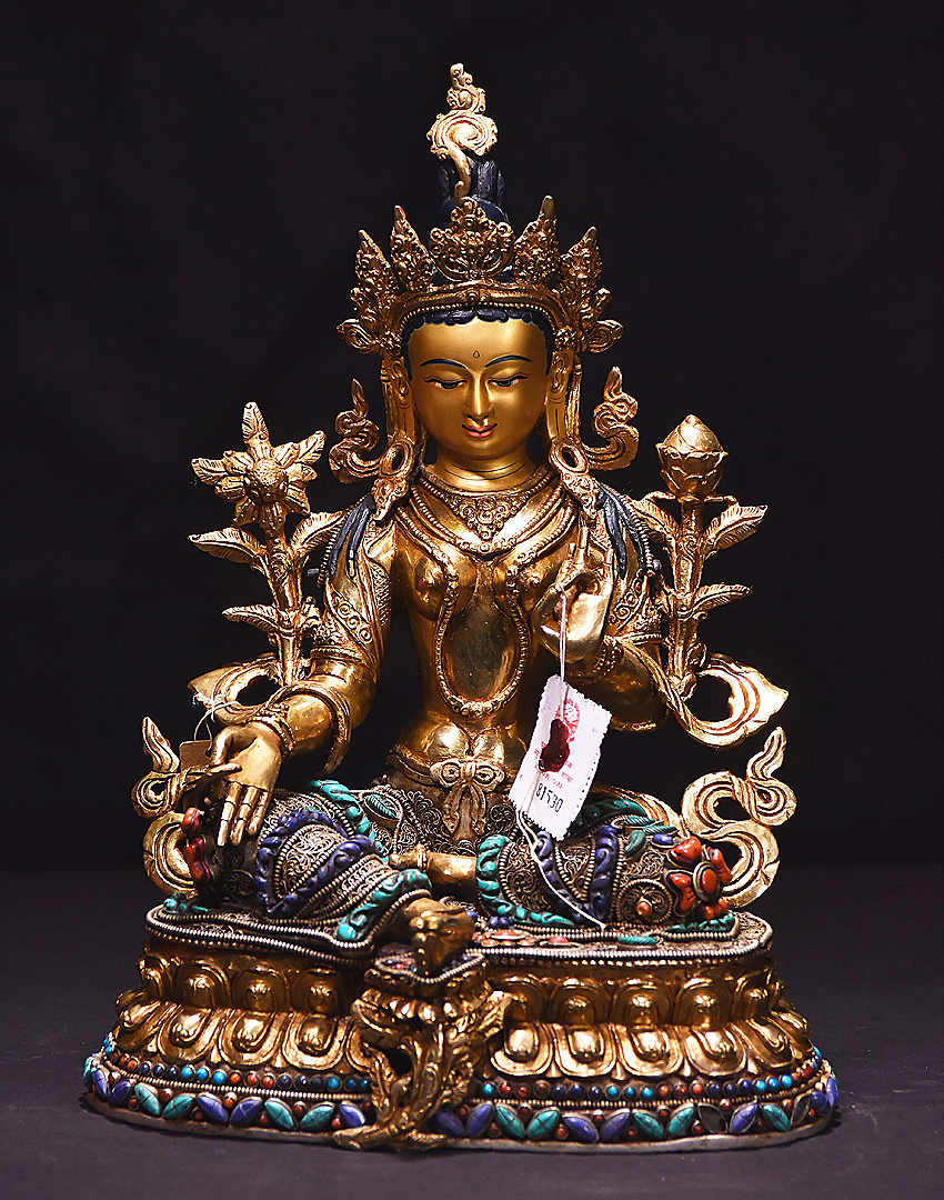 產(chǎn)地:尼泊爾佛像 工藝:鎏金 創(chuàng)作年份: 題材:綠度母 繪制時間:0日 尺寸:*33*33cm 重量:0 g 材質(zhì):紫銅 使用場地: