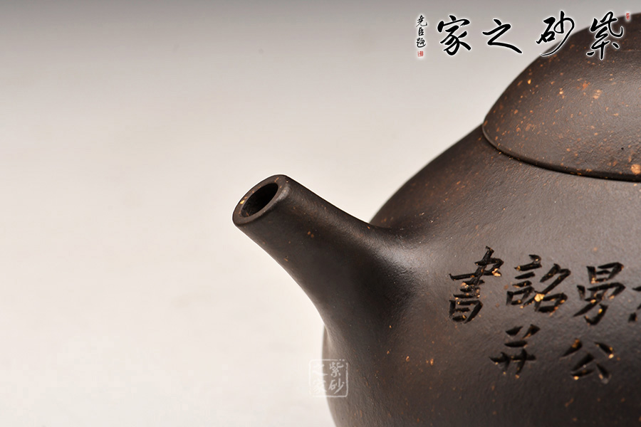 黑金砂是紫泥里的一種,原礦里含錳高,含鐵紅粉豐富,所以經(jīng)過高溫?zé)珊髩厣硗w烏黑油亮隱隱泛著紅色的顆粒有如亞金一樣,故稱黑金砂,泥料含有朱砂,段泥砂的屬性,容易泡養(yǎng)。黑金砂紫泥中的精品