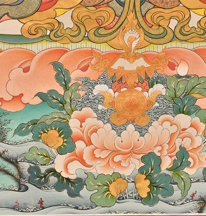 | 唐卡是歷史的瑰寶,現已被例入國家非物質文化遺產名錄,得到了高度的重視和保護。同時由于顏料的珍稀、繪制周期長、工藝復雜大大增強了其珍藏價值。一幅好的作品可遇不可求,近年來唐卡已成為收藏界炙手可熱的藏品。 | 唐卡的形式便于攜帶,其內容體現了藏傳佛教的莊重、神圣、華貴,被稱為“移動的佛像”。同時也是修行者積累善業,追尋心靈的平靜與安寧的一個過程。 | 唐卡的內容包羅萬象,它以圖像的方式承載著藏族文化精髓,是藏族智慧的結晶,廣泛傳播了藏地的文化、歷史和宗教理論。 | 唐卡絢麗的色彩、流暢的線條、嚴謹的結構,都充滿著濃郁的高原和游牧民族風情,無疑是難得的藝術珍品。值得一提的是唐卡繪制顏料全部為天然礦物顏料,畫面效果艷麗,可以保存千年而不變色。 |