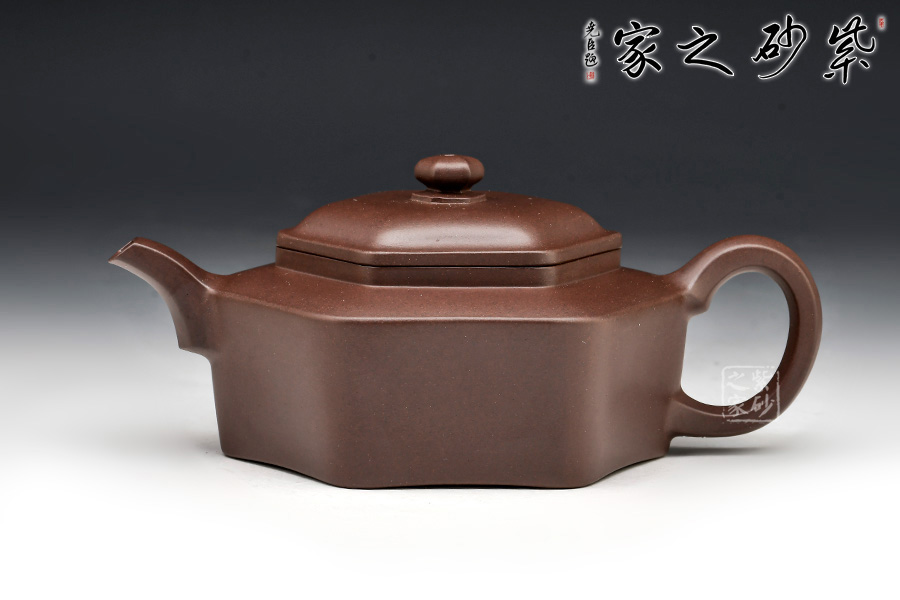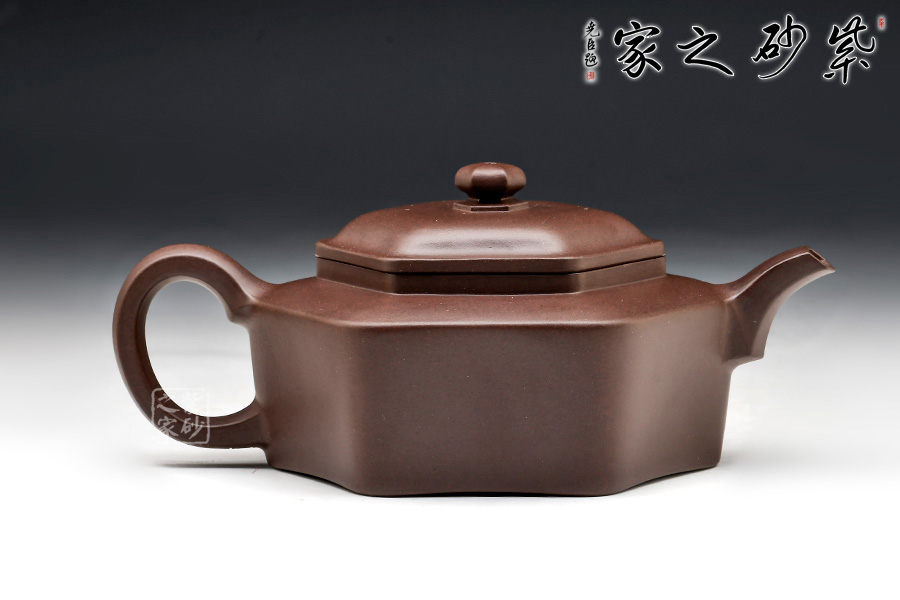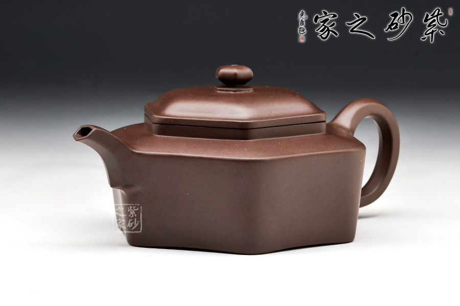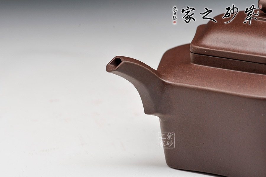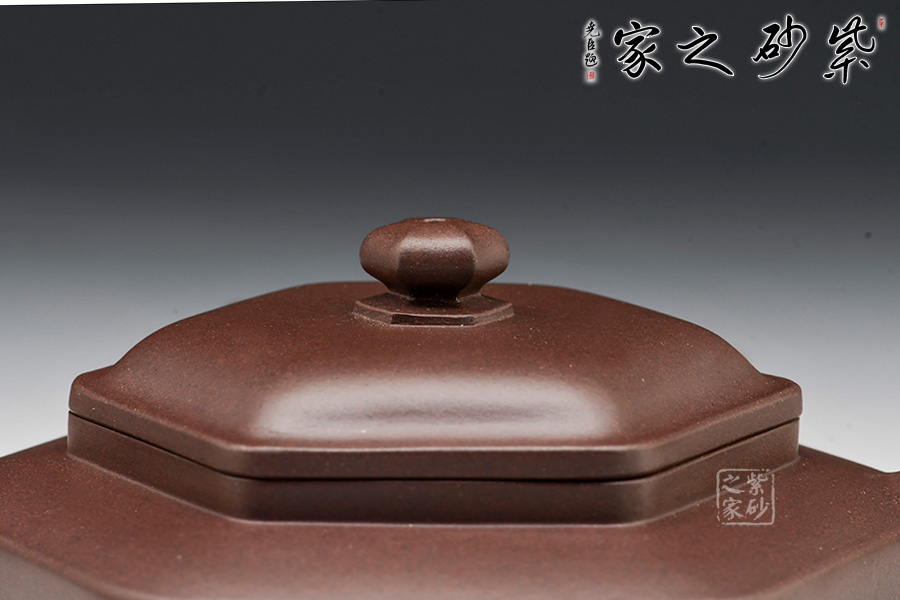 整壺線條清晰,比例得當(dāng),色彩豐富,頗見功力。此壺身乃六片鑲接而成,壺蓋也為六邊,流、把亦化圓為方,各部銜接自然光滑。