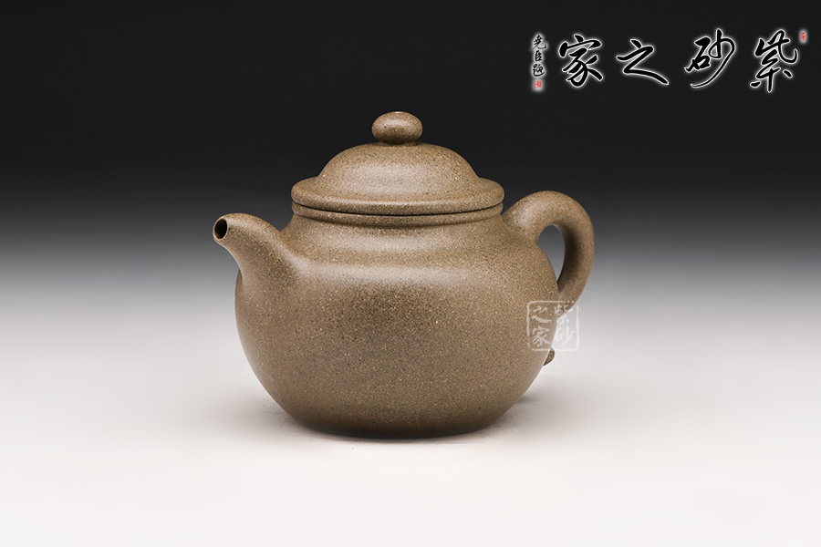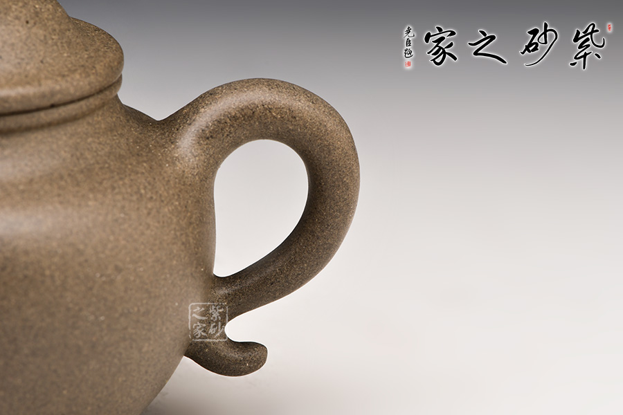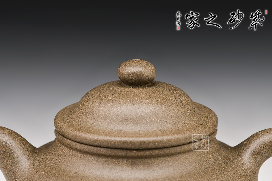 蓮子造型,鼓腹、耳形把、二彎流,蓋面凸起,蓋唇與頸唇外翻并相互吻合,口蓋嚴(yán)密、制工精雅。