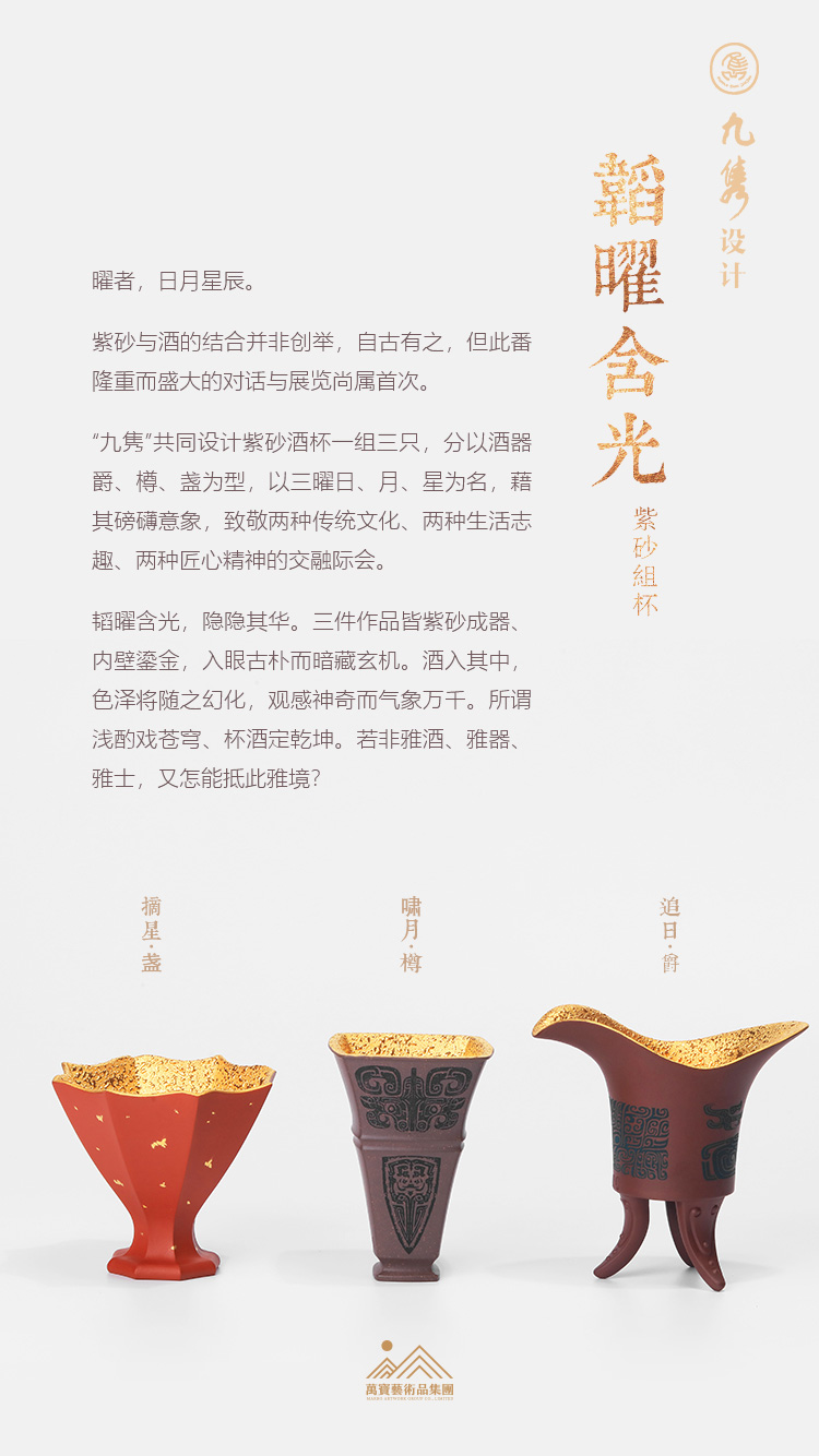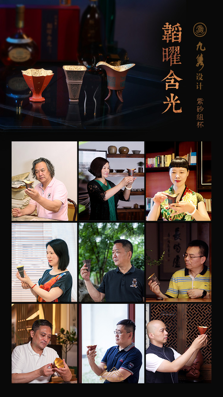 九位在業(yè)界已有聲望、才華橫溢且各擅其長(zhǎng)的紫砂俊彥共組“九雋”,由范建軍、顧美群、蔣雍君、喻小芳、范偉群、史小明、蔣琰濱、毛子健、范澤鋒9位紫砂大師自行組合,旨在更好地宣傳紫砂文化、交流紫砂工藝、展示紫砂技藝。