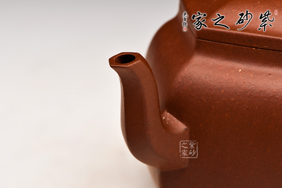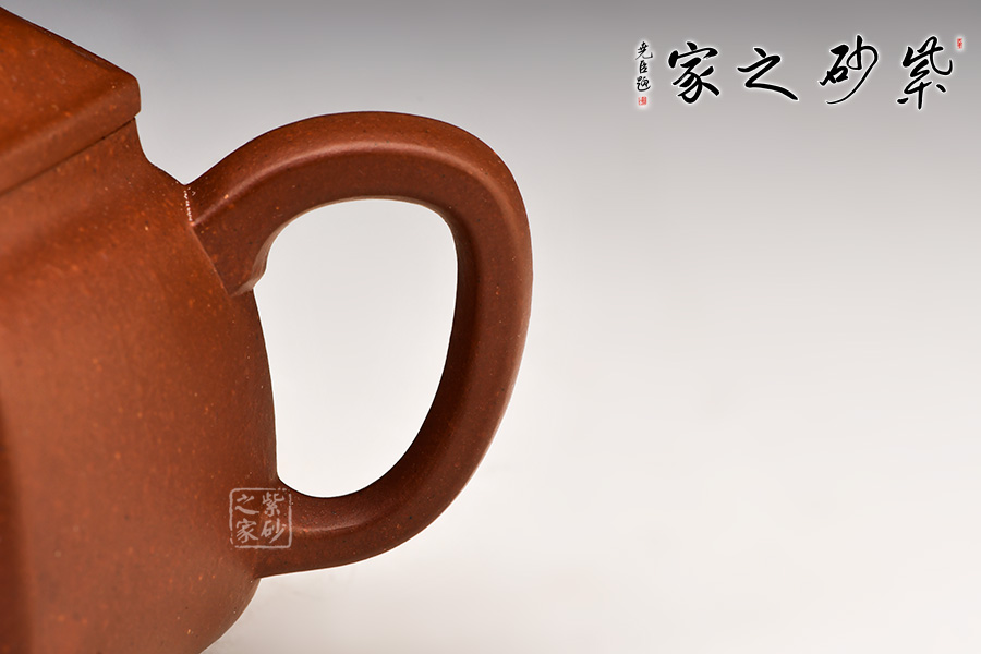 紫砂壺有筋骨,是因為紫砂人的功夫深厚。此壺為標(biāo)準的傳統(tǒng)造型壺,方器造型方中藏圓,線面挺括平正,輪廓線條分明,給予人們干凈利落,明快挺秀之感。