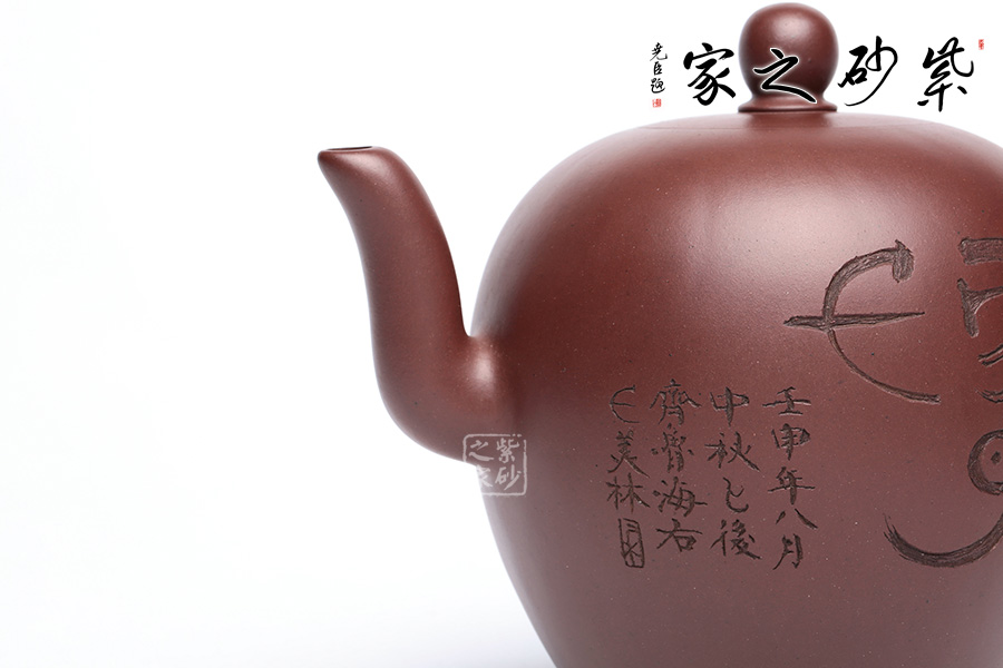 此作壺體似美人肩壺,“香玉在懷”,壺型宛如古代女子端莊可愛(ài),帶點(diǎn)宮廷的雍容華貴,又不失大家閨秀般的妖嬈。造型飽滿,大方得體,以體現(xiàn)圓潤(rùn)的壺身為主,壺蓋與壺身仿佛合為一體,沒(méi)有空隙,用手撫摸上去,能感受到她的溫暖。