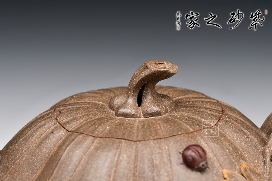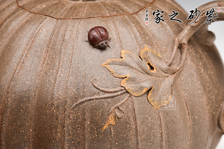 最令人眼前一亮的是壺身上塑有一只可愛小瓢蟲,正慢慢爬向瓜葉。濃濃生活氣息撲面而來(lái),讓你仿佛置身一片瓜田,正在目睹這一趣味一幕。