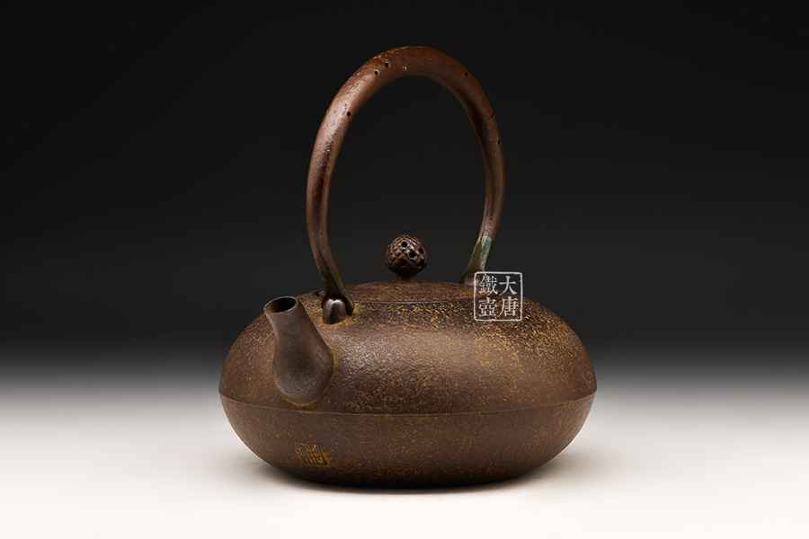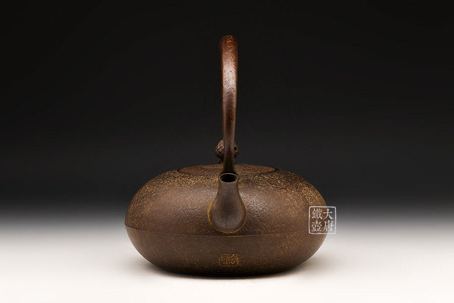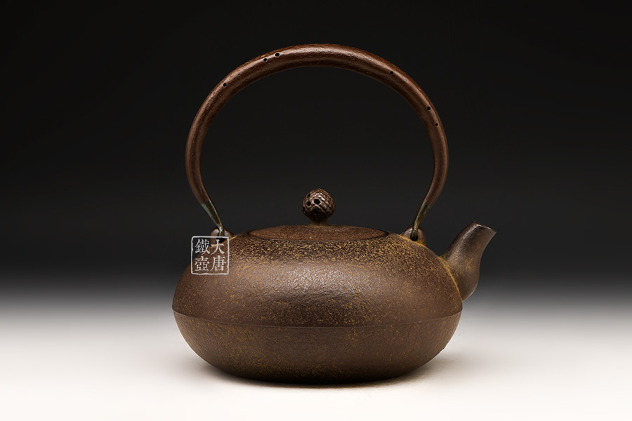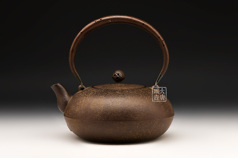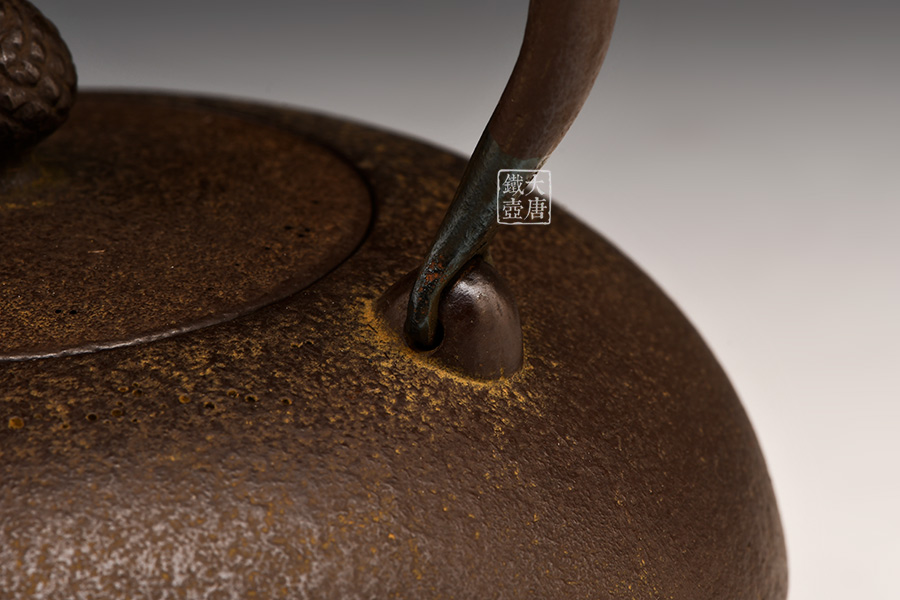 南部名家田山和康匠心手作,經(jīng)典布團型,鲇魚肌,整器圓潤飽滿,鐵肌細膩潤和,搭配夾把式蟲蝕提梁,大氣簡約,品質非凡。
