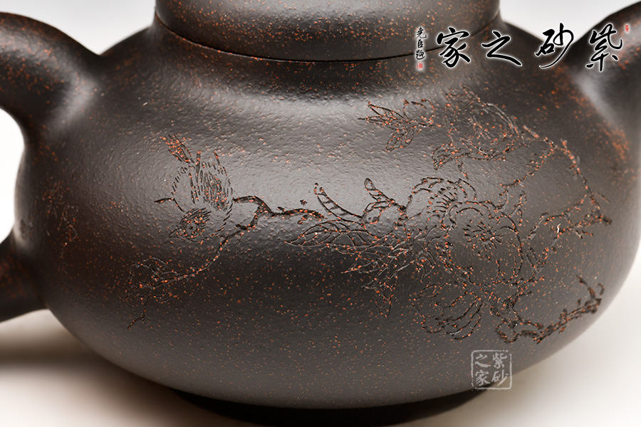 研究員級高級工藝美術(shù)師王福君老師所制的漱泉壺色澤醇和深邃,溫潤討喜。經(jīng)由實力陶刻師孔良法雙面裝飾,更具收藏價值。
