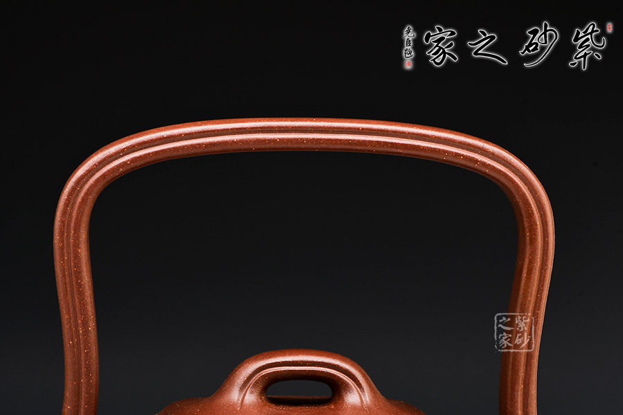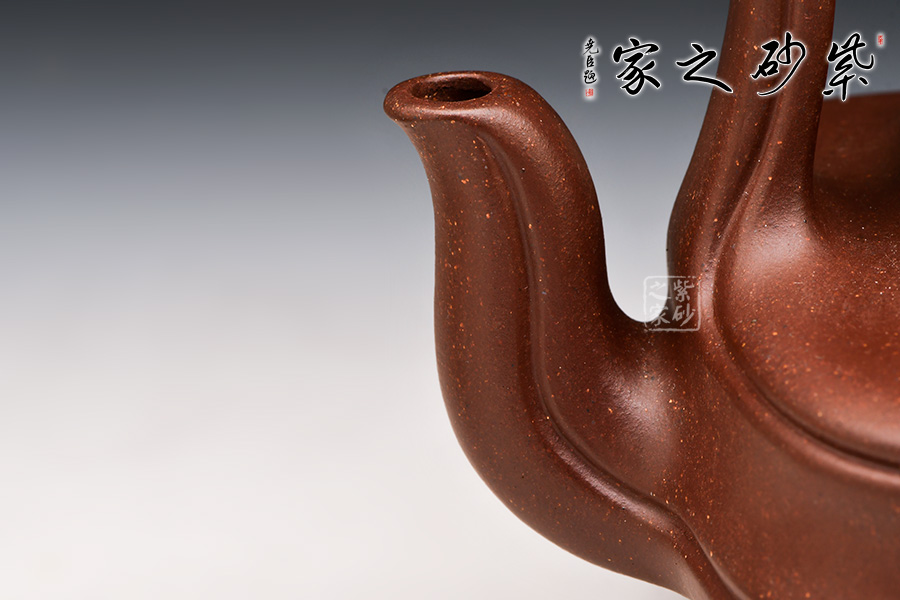 此作創(chuàng)作精髓還在于超高的提梁,動(dòng)勢(shì)飛揚(yáng),協(xié)調(diào)呼應(yīng)。每一處細(xì)節(jié),每一種角度,都處理得恰到好處,增一分則太肥,減一分則太瘦,足見(jiàn)藝人功力。