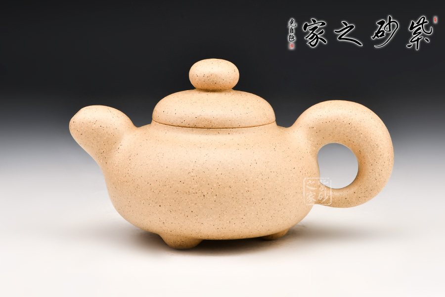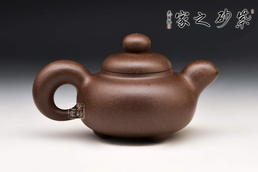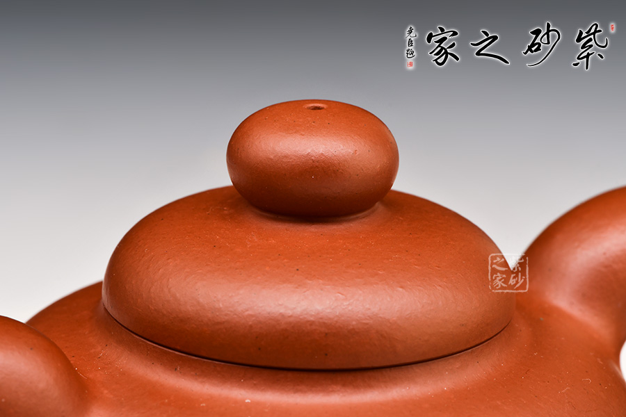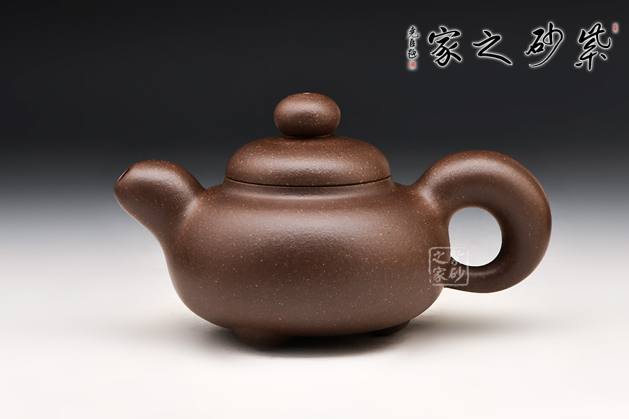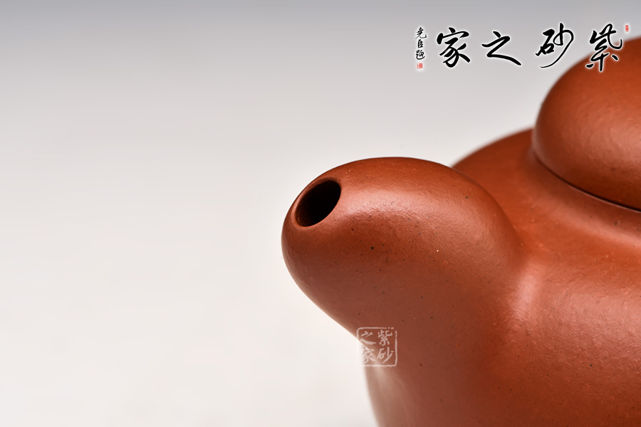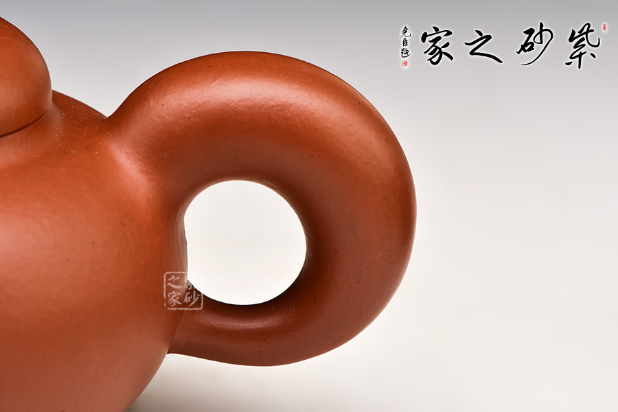 此壺整體協(xié)調(diào)統(tǒng)一,壺身豐潤飽滿,短彎流自壺身胥出,出水爽快,寶珠鈕立于壓蓋之上,蓋與壺口嚴絲合縫,圈把渾圓厚重,壺把和壺嘴的造型都很傳統(tǒng),整個壺型厚重而不苦悶,優(yōu)雅又不輕佻。此套壺實用的同時又極具收藏價值!