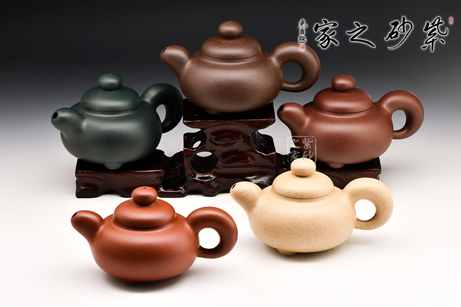 此五色土福圓壺為一組套壺,除顏色外,形狀大小都一樣。