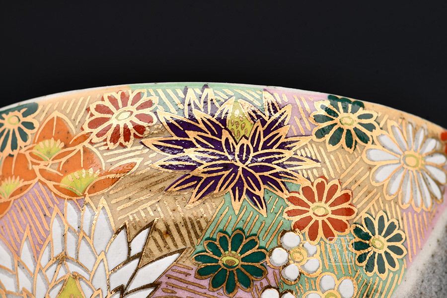 “九谷燒”取名于“九谷村”,并且這個時期制造的陶瓷被稱為“古九谷”。它是繼承自傳統的修養的正規武士們藩、里的畫匠們、還有就是后藤才次郎從長崎領來的朝鮮以及明朝的技術者、和有田的陶瓷工人們等同心協力制陶的智慧精華于一身。“九谷燒”的獨特風格,是它的繪畫線條豪放、明快,顏色有綠、黃、紅、紫、藏青色等五種。九谷燒經過采石、粉碎、篩籮、沉淀、成形、烘烤、素燒、繪畫、施釉、燒制、彩繪后再燒制等十幾道工序完成。古九谷燒瓷質溫潤,配色強烈,運用紅、黃、綠、紫、青等五種顏色,大膽構圖,線條自然流暢有力,形成豪放,秀麗,奢華的高品位獨特風格。