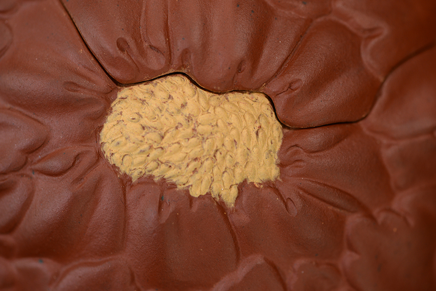 泥性:感甜嫩綿密,質堅而溫潤,呈近田黃色調,為江蘇宜興趙莊山系朱泥礦~黃石黃之共生礦,經(jīng)挑揀練製而成,因含鐵量只達6%左右,致陶之后呈“金田黃色”。