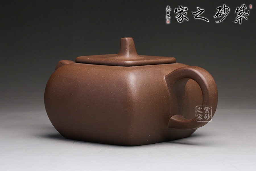 四方壺,高級工藝美術師萬亞鈞所制,采用原礦紫泥,泥質細膩、色澤古穆;緊密結實,穩(wěn)定性佳。