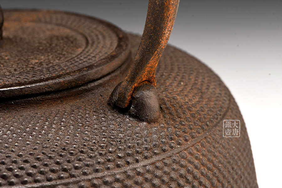 荒井工房的鐵瓶除了在鑄造工藝上有嚴(yán)格的規(guī)范和體系,在鐵瓶裝飾技術(shù)上也頗有建樹。除了傳統(tǒng)的印刻技術(shù)外,荒井工房還掌握了非常出色的金銀鑲嵌技藝,尤其以大片的鏨刻銀片最為出眾,這在山形當(dāng)?shù)靥每谥歇?dú)樹一幟。